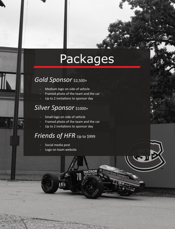 Contact: hfr@stcloudstate.edu • We have YouTube channel Husky Formula Racing SCSU